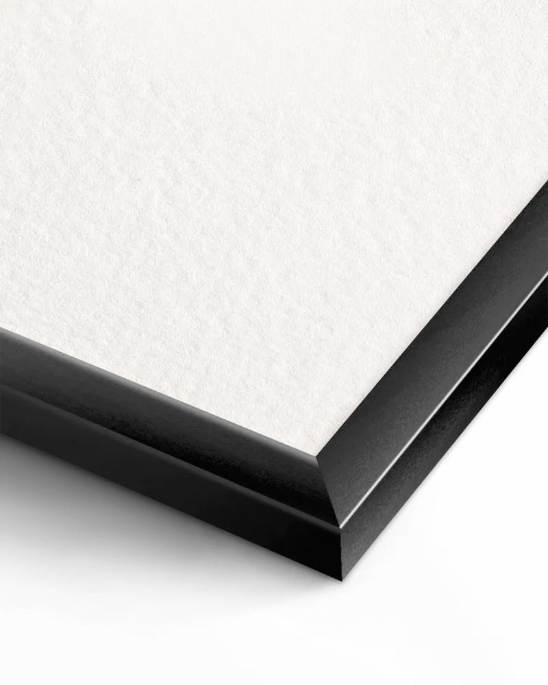 A moldura em alumínio preto, leve e resistente, realça a imagem sem a sobrecarregar, enquanto o papel semi-brilho premium valoriza as cores com profundidade e um brilho subtil, sem reflexos excessivos. O conjunto transmite uma presença forte e cuidada, ideal para quem procura um produto de aspeto profissional, semelhante ao que se encontra em galerias e espaços criativos.